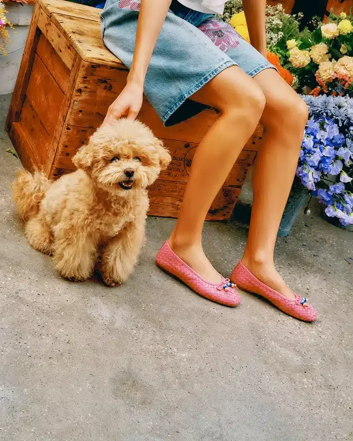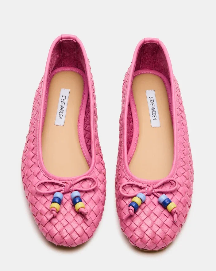 Die Ballerinas aus Divy-Pink-Leder zeugen mit ihrer gewebten Konstruktion und der anmutigen Schleifenverzierung von raffinierter Handwerkskunst. Dieses Design mit runder Zehenpartie verbindet minimalistische Ästhetik mit funktionaler Eleganz und ist damit die ideale Wahl für alle, die einen vielseitigen flachen Schuh suchen, der sich mühelos an verschiedene Anlässe anpassen lässt. Die strukturierten Webdetails sorgen für optische Abwechslung, ohne die zurückhaltende Raffinesse zu beeinträchtigen, für die Ballerinas bekannt sind.