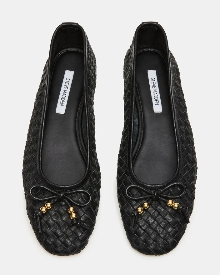 Die Divy Ballerinas aus schwarzem Leder zeugen mit ihrer gewebten Konstruktion und der anmutigen Schleifenverzierung von raffinierter Handwerkskunst. Dieses Design mit runder Zehenpartie vereint minimalistische Ästhetik mit funktionaler Eleganz und ist damit die ideale Wahl für alle, die einen vielseitigen flachen Schuh suchen, der sich mühelos an verschiedene Anlässe anpassen lässt. Die strukturierten Webdetails sorgen für optische Akzente, während die zurückhaltende Raffinesse, für die Ballerinas bekannt sind, erhalten bleibt.