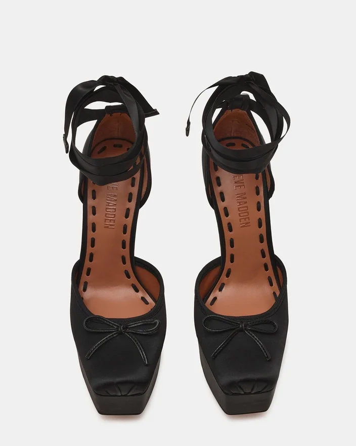 Verleihen Sie Ihrem Stil das gewisse Etwas mit den „Listen Black Satin“ Ballerinas mit Plateauschuhen, die sich durch ein zartes Riemchen-Schnürdesign auszeichnen, inspiriert von klassischen Ballettschuhen. Diese Schuhe wurden entwickelt, um sowohl Eleganz als auch Stabilität zu bieten. Sie betonen Ihre Silhouette und sorgen gleichzeitig für einen sicheren Halt. Ihr einzigartiges Finish verleiht ihnen einen Hauch von Luxus, wodurch sie sich perfekt für elegante Anlässe oder einen unvergesslichen Abend eignen.