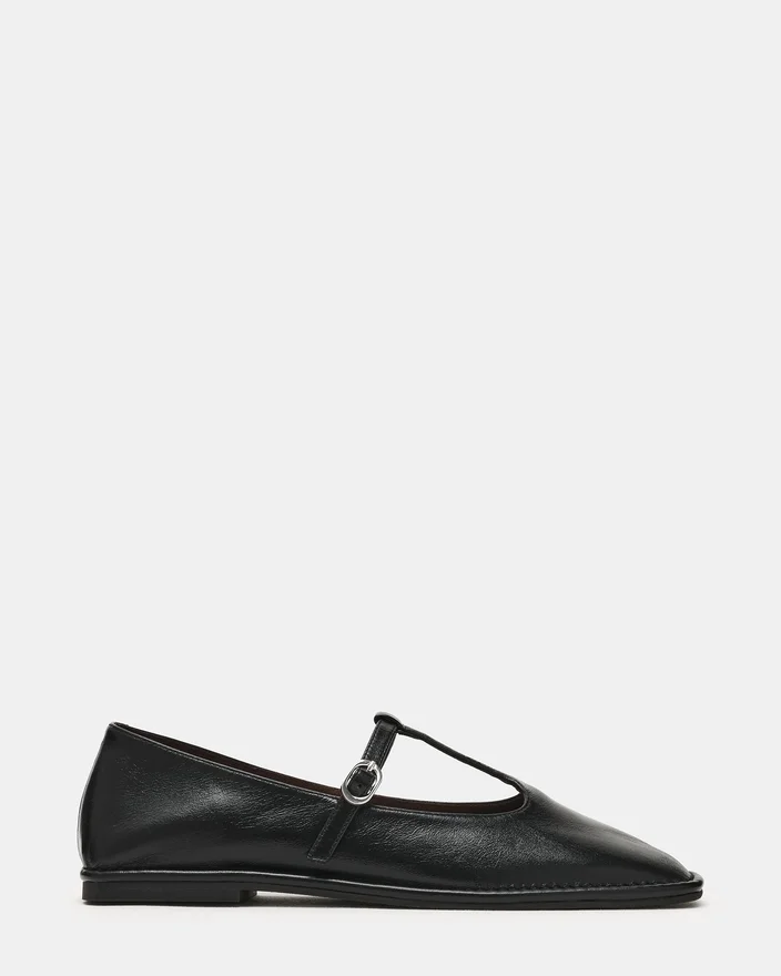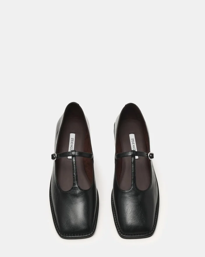 Der Macbeth aus schwarzem Leder verbindet zeitlose Eleganz mit modernem Design. Mit seiner markanten Silhouette mit eckiger Zehenpartie und raffinierten T-Riemen-Details bietet dieses Modell sowohl Raffinesse als auch Komfort. Die Ballerinas-Konstruktion sorgt für ein schlankes Profil, das sich perfekt für den Übergang vom Tag zum Abend eignet, während die strukturierte Zehenpartie und der stützende Riemen für einen sicheren, eleganten Sitz sorgen. Eine unverzichtbare Ergänzung für jede anspruchsvolle Garderobe.