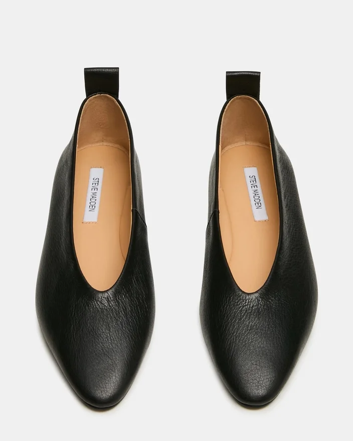 Der Swanky Ballerina aus schwarzem Leder mit mandelförmiger Spitze ist ein Meisterwerk an zurückhaltender Raffinesse. Seine Silhouette sorgt für eine elegante Optik, während die flache Konstruktion den ganzen Tag über Tragekomfort garantiert. Dieses Design schlägt eine Brücke zwischen minimalistischer Ästhetik und praktischem Komfort und ist damit der perfekte Schuh für alle, die hochwertiges Schuhwerk schätzen. Perfekt für den Aufbau einer raffinierten, vielseitigen Garderobe, die über Anlässe und Jahreszeiten hinausgeht.