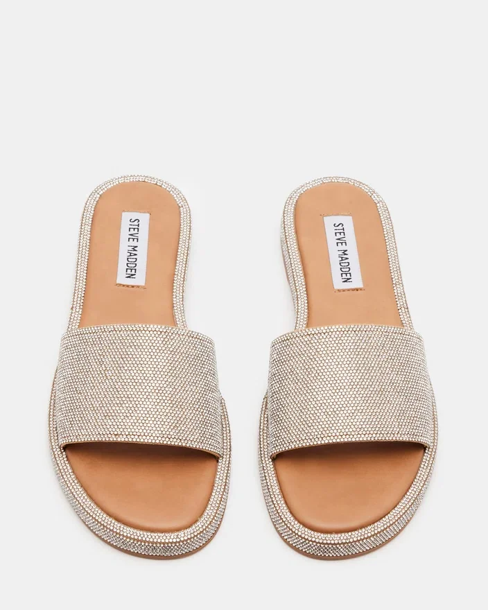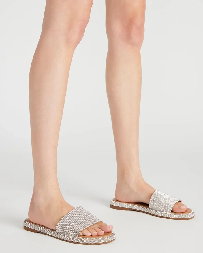 Peppen Sie Ihren Stil mit den Achieve Rhinestone Sandalen auf. Diese verspielten und koketten Sandalen verleihen jedem Outfit einen Hauch von Glanz & Glamour. Schlüpfen Sie in diese bequemen und glänzenden Sandalen.