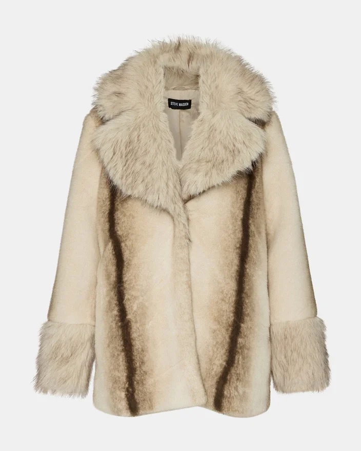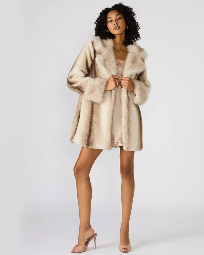 Der Carmelina Mantel Multi besticht durch sein langärmeliges Design aus luxuriösem Kunstfell, das sowohl Wärme als auch Stil bietet. Sein mehrfarbiges Muster verleiht ihm eine unverwechselbare, modische Note, ideal, um jede Wintergarderobe aufzuwerten. Diese Jacke verbindet weichen Komfort mit fachmännischer Schneiderkunst und ist damit eine raffinierte Wahl für Lagenlooks bei kaltem Wetter.