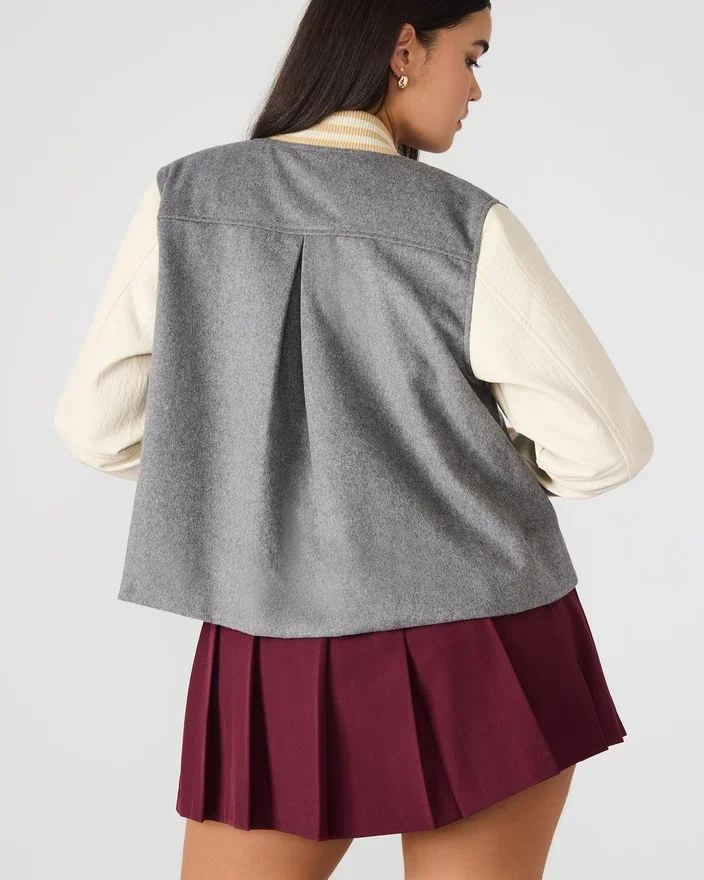 - Kontrastierende Lederärmel