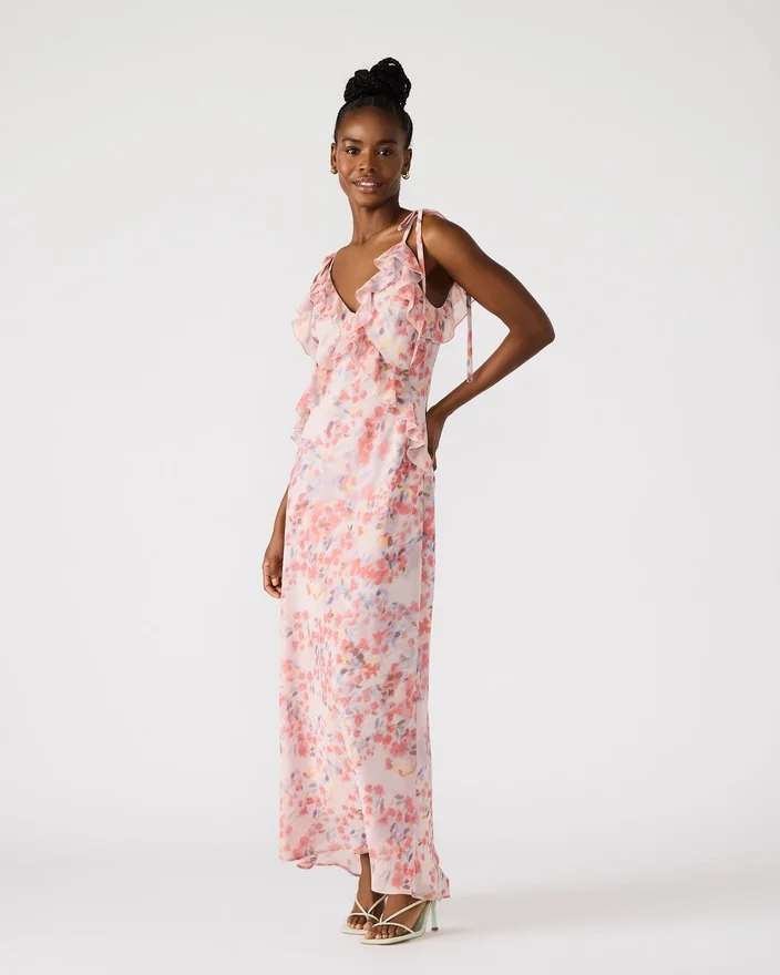 Stehen Sie im atemberaubenden Adalina-Kleid im Mittelpunkt. Dieses Kleid besticht durch einen V-Ausschnitt und Rüschen, die Sie bei jedem Anlass hervorstechen lassen. Mit seinem ärmellosen Design ist dieses Maxikleid die perfekte Ergänzung für Ihre Garderobe. 54″