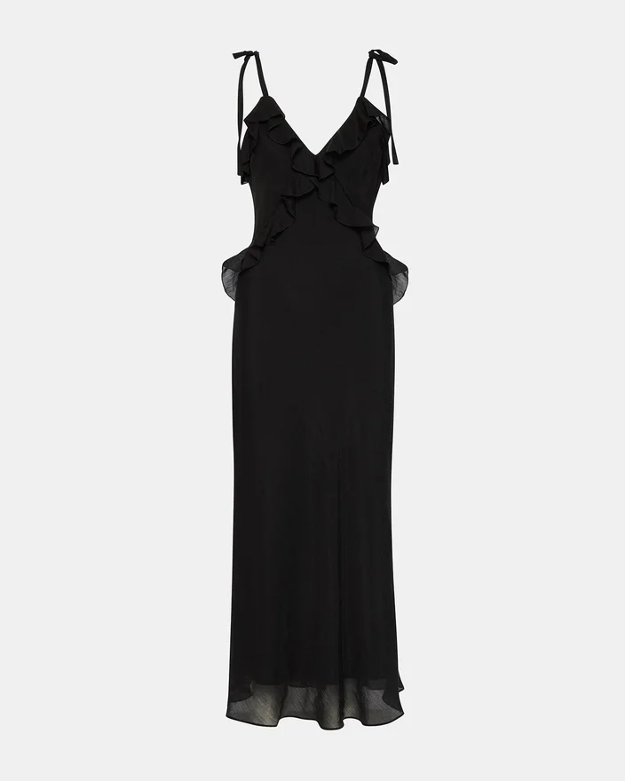 Stehen Sie im atemberaubenden Adalina-Kleid im Mittelpunkt der Aufmerksamkeit. Dieses Kleid verfügt über einen V-Ausschnitt und Rüschendetails, mit denen Sie bei jedem Anlass auffallen werden. Mit seinem ärmellosen Design ist dieses Maxikleid die perfekte Ergänzung für Ihre Garderobe.