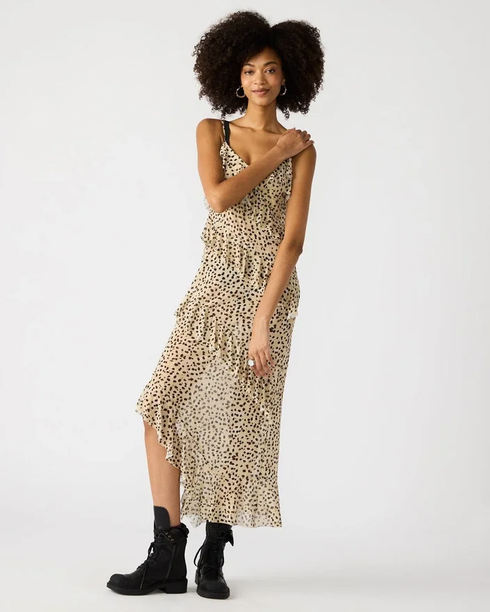 Dieses Aida-Kleid besticht durch ein fließendes Rüschen-Design und einen V-Ausschnitt – perfekt für einen bequemen und stilvollen Look. Seine Maxilänge und das ärmellose Design bieten Vielseitigkeit und Atmungsaktivität. Aus hochwertigen Materialien gefertigt, ist dieses Kleid ein Must-Have für alle Modebewussten, die nach einem Statement-Stück für ihre Garderobe suchen.