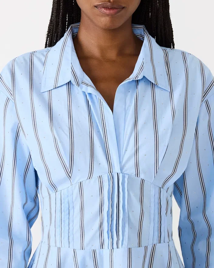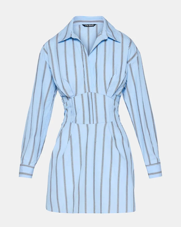 Das Ariany-Kleid in Estate Blue verbindet zeitlose Eleganz mit Alltagstauglichkeit. Dieses langärmelige Design verfügt über einen knackigen Kragenausschnitt, der jeden Anlass aufwertet, während eine taillierte Taille eine schmeichelhafte Silhouette schafft, die Ihre Figur betont. Praktische Vordertaschen sorgen für Funktionalität, ohne den Stil zu beeinträchtigen, sodass sich dieses Kleidungsstück gleichermaßen für das Büro wie für Wochenendausflüge eignet. Die Kleider bieten Vielseitigkeit, die sich mühelos mit Ihrer bestehenden Garderobe kombinieren lässt, und sorgen für einen eleganten Look, der über die Jahreszeiten hinausgeht.