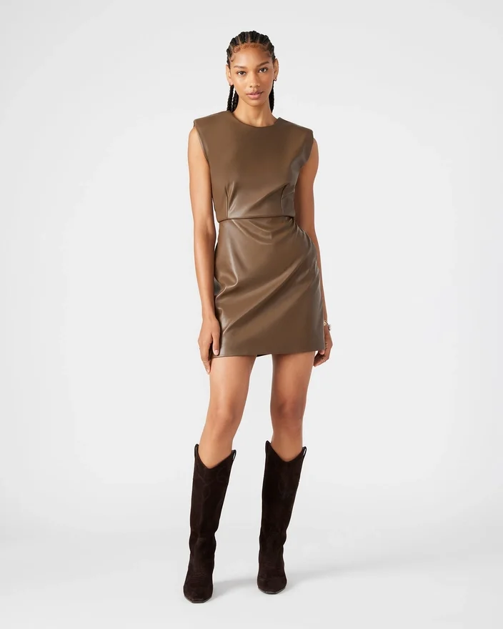 Gönnen Sie sich Luxus mit unserem Belen-Kleid. Dieses Minikleid verfügt über ein gefüttertes Oberteil für eine bequeme Passform, praktische Taschen und dezente Schulterpolster. Der dehnbare Gummizug am Rücken und der Logo-Reißverschluss in der Rückenmitte verleihen diesem Kleidungsstück einen Hauch von Raffinesse. Werten Sie Ihren Stil mit diesem exklusiven Kleid auf.