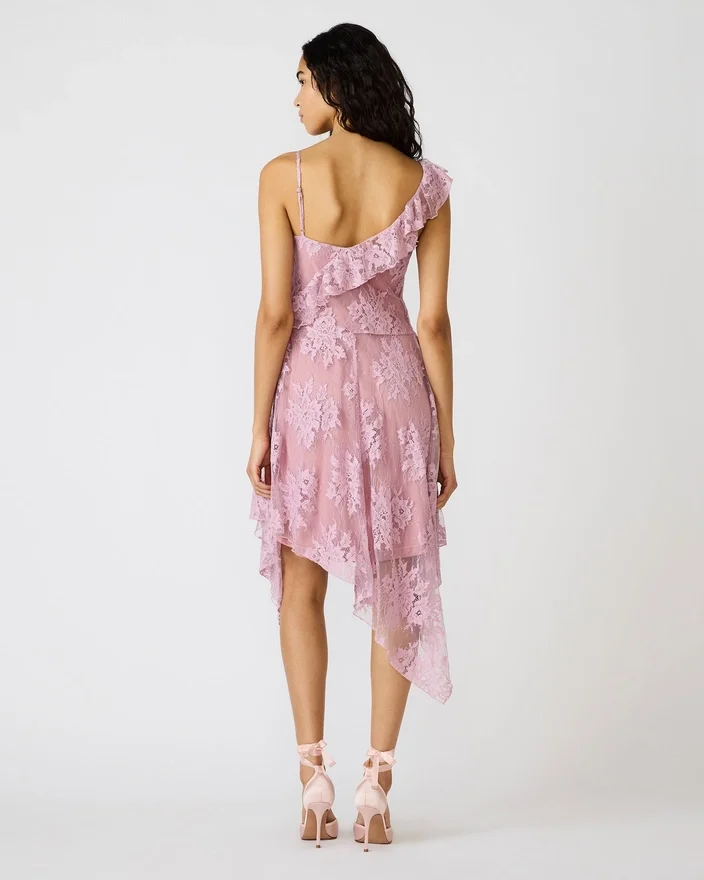 Das Dariella-Kleid Mauve Shadows verbindet mühelose Eleganz mit raffinierten Details. Diese ärmellose Midi-Silhouette besticht durch einen schmeichelhaften V-Ausschnitt und fließenden Stoff, der sich bei jedem Schritt anmutig bewegt. Zarte Spitzen-Mesh-Details sorgen für Struktur und optische Spannung und schaffen einen raffinierten Look, der sich sowohl für besondere Anlässe als auch für gehobene Alltagskleidung eignet.