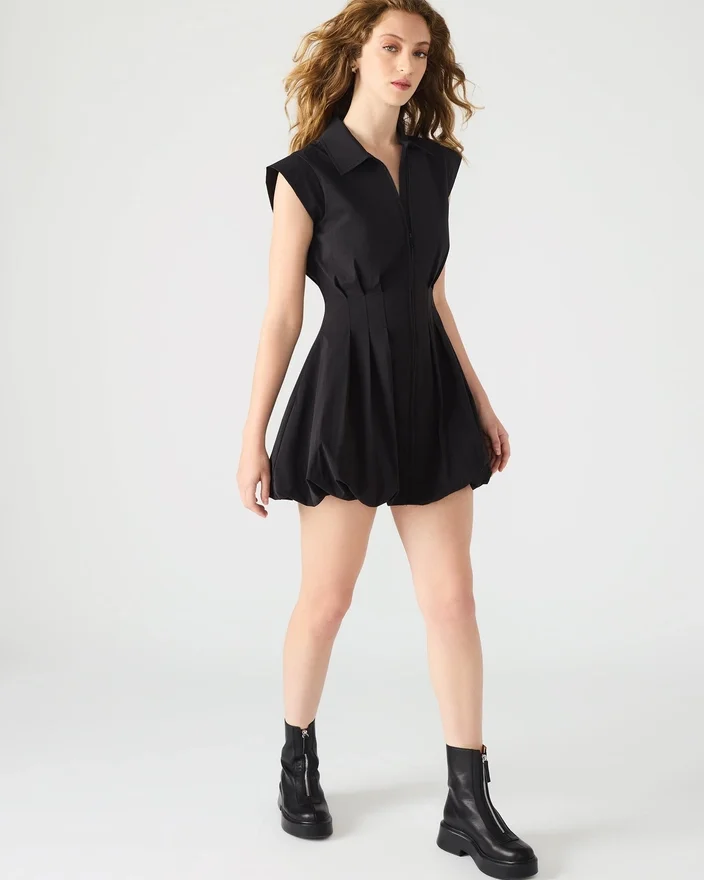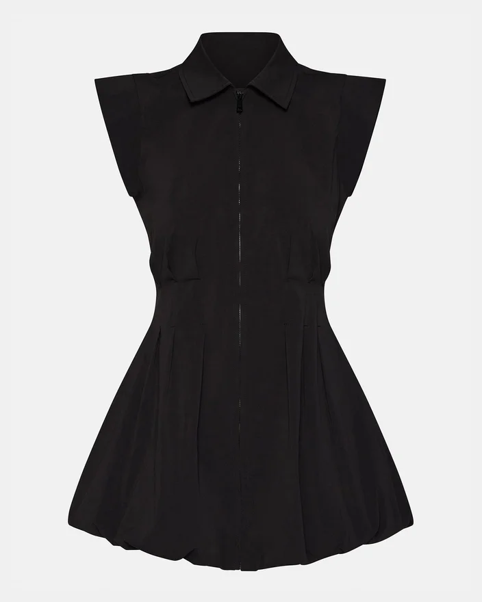 Das Dyanne-Kleid ist ein stilvolles Minikleid aus Tech-Nylon mit Reißverschluss vorne und ausgestellter Säume. Mit seinem Kragenausschnitt eignet sich dieses Kleid perfekt für jeden Anlass und sorgt für einen modernen, schicken Look. Es ist aus hochwertigen Materialien gefertigt und bietet sowohl Komfort als auch Langlebigkeit. Machen Sie sich bereit, alle Blicke auf sich zu ziehen und in diesem Must-Have-Kleid zu glänzen.<!–