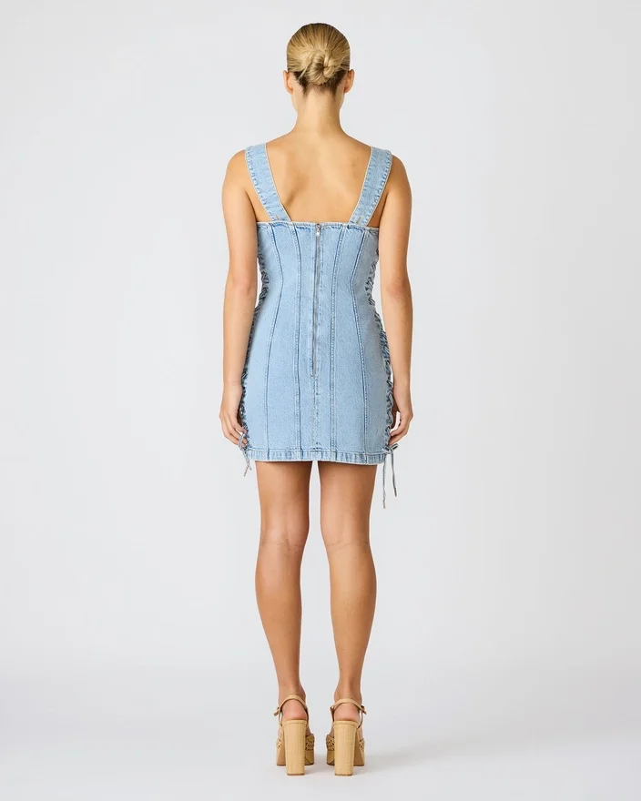 Peppen Sie Ihren Denim-Look mit diesem schicken Gianka-Kleid in Hazey Blue auf, das sich durch einen schmeichelhaften quadratischen Ausschnitt und ausgefallene Schnürdetails an der Seite auszeichnet. Der praktische Reißverschluss am Rücken sorgt für eine bequeme Passform, während die klassische Denim-Konstruktion zeitlose Vielseitigkeit bietet. Dieses Kleidungsstück eignet sich perfekt für Freizeit-Ausflüge oder festliche Anlässe und lässt sich nahtlos vom Tag in den Abend überführen.