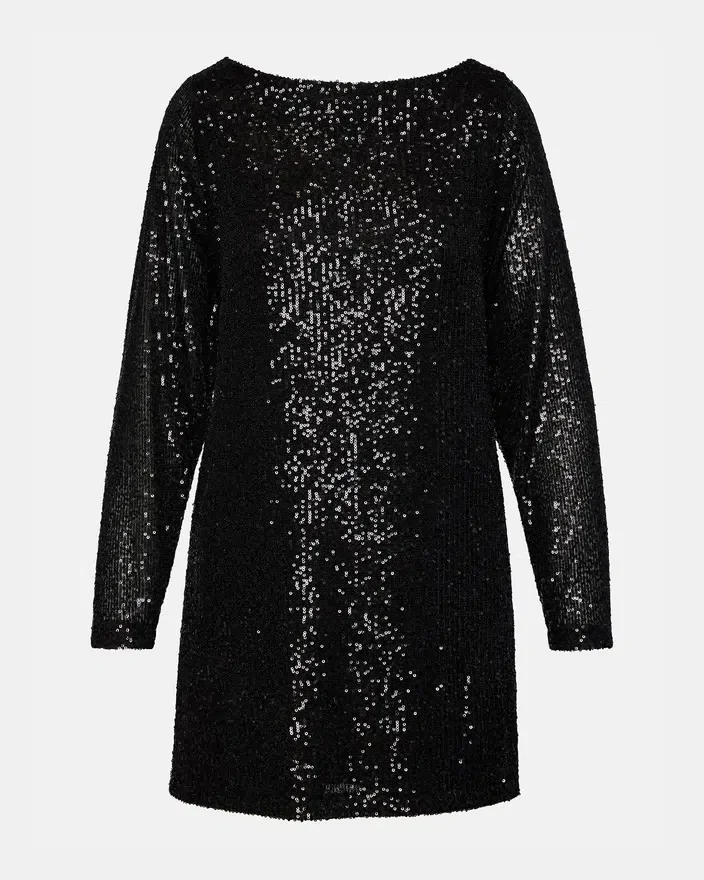 Ergänzen Sie Ihre Garderobe mit dem Ginger-Kleid. Dieses elegante Kleid verfügt über lange Ärmel und ein funkelndes Pailletten-Design – perfekt für einen Abendausgang. Mit seiner Minilänge lässt es Ihre Beine länger wirken und verleiht jedem Anlass einen Hauch von Glamour.