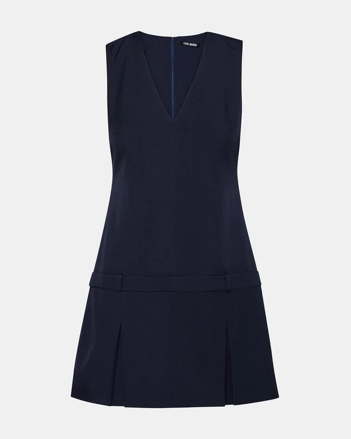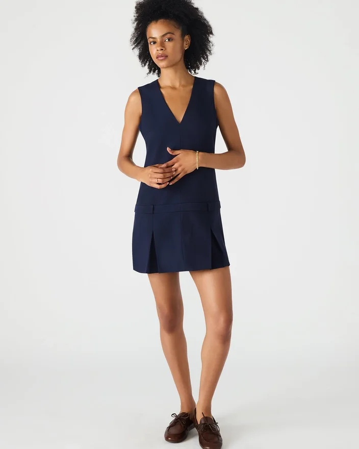 Das Henley-Kleid besticht durch einen schmeichelhaften V-Ausschnitt und einen verspielten, plissierten Rockteil, der für Bewegung und Stil sorgt. Es ist als Minikleid geschnitten und verfügt über Gürtelschlaufen für eine individuelle Passform sowie einen Reißverschluss am Rücken für einfaches Anziehen. Dieses Modell verbindet klassische Details mit moderner Schnittführung und eignet sich perfekt für vielseitige, elegante Looks.