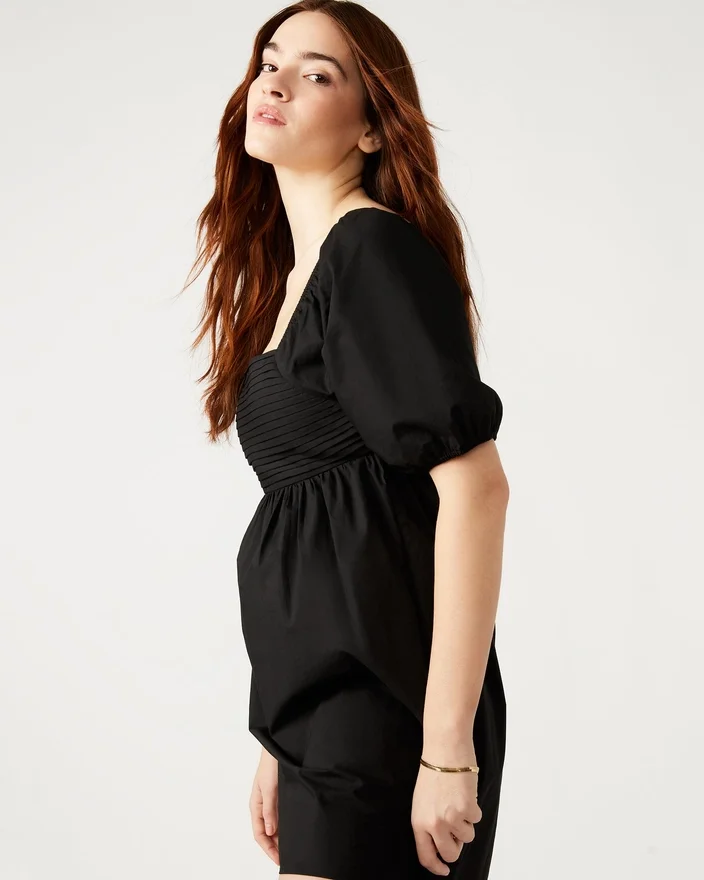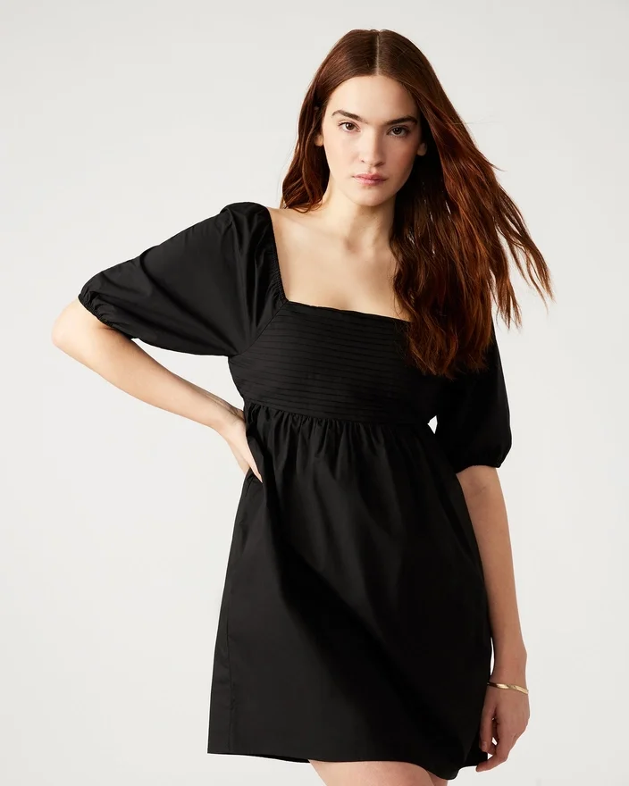 Das Inara-Kleid bietet einen femininen und eleganten Stil. Mit kurzen Puffärmeln, Rüschen- und Volantdetails sowie einem schmeichelhaften quadratischen Ausschnitt sorgt dieses Mini-Cocktail-Kleid dafür, dass Sie bei jedem Anlass auffallen. Werten Sie Ihre Garderobe mit diesem Must-Have-Kleid auf.