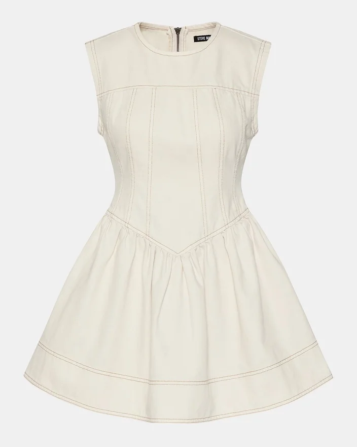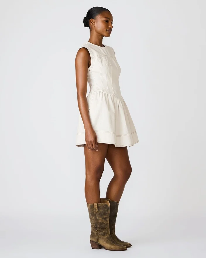 Das Irinna-Kleid Sand zeichnet sich durch raffinierte Schnitte mit durchgängig sorgfältig gearbeiteten Nähten aus, die eine elegante Silhouette schaffen. Der hohe Ausschnitt bietet raffinierte Bedeckung, während der praktische Reißverschluss am Rücken für einen eleganten Verschluss und einfachen Tragekomfort sorgt. Dieses Minikleid verbindet zeitgenössisches Design mit fachmännischer Handwerkskunst und ist damit ein unverzichtbares Kleidungsstück für stilvolle Alltagsoutfits oder besondere Anlässe.