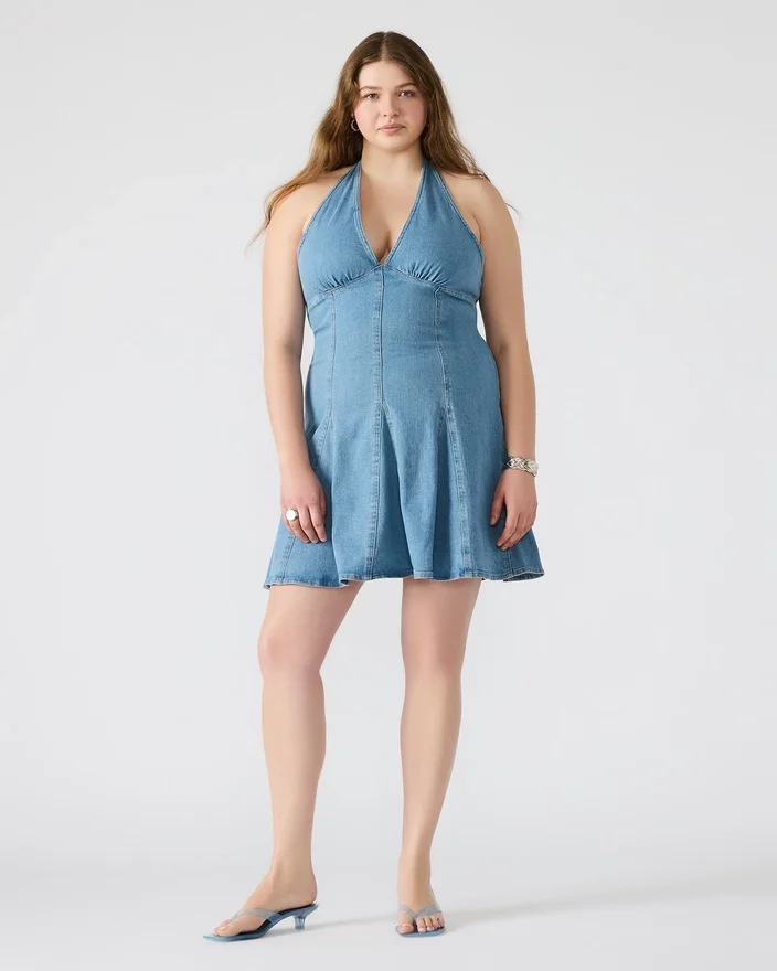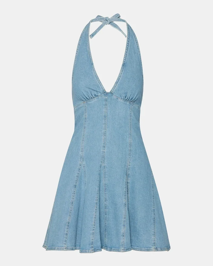 Das Malia-Jeanskleid ist mühelos schick und vielseitig und ein Must-Have für jede Garderobe. Dieses Minikleid im Neckholder-Stil ist aus hochwertigem Denim gefertigt und verfügt über einen Bindegürtel im Nacken sowie einen Reißverschluss für einen sicheren Sitz. Perfekt für einen Tag im Freizeit-Stil oder einen eleganten Abend in der Stadt – dieses Kleid bietet sowohl Stil als auch Komfort.
