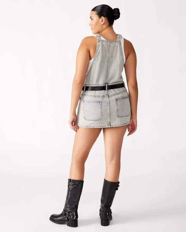 Wir präsentieren das Tamia-Kleid, ein vielseitiges Kleidungsstück für Ihre Garderobe. Dieses Minikleid im Overall-Stil aus gewaschenem Denim verfügt über eine praktische aufgesetzte Tasche am Oberteil und einen separaten Gürtel für eine individuelle Passform. Kombinieren Sie es je nach Anlass elegant oder leger.