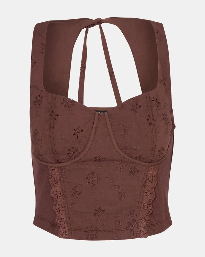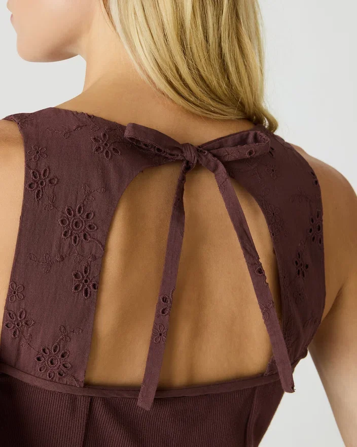 Das Dixie Strickoberteil Walnut besticht durch seine lässige Eleganz mit ärmelloser Silhouette und zarten Lochstickereien. Ein strategisch platzierter Ausschnitt am Rücken, kombiniert mit einem verstellbaren Bindeband, sorgt für optische Akzente und ermöglicht vielseitige Stylingmöglichkeiten – ob elegant für Abendveranstaltungen oder in der Freizeit. Dieses Teil eignet sich perfekt zum Kombinieren oder solo und lässt sich wunderbar über alle Jahreszeiten hinweg tragen.