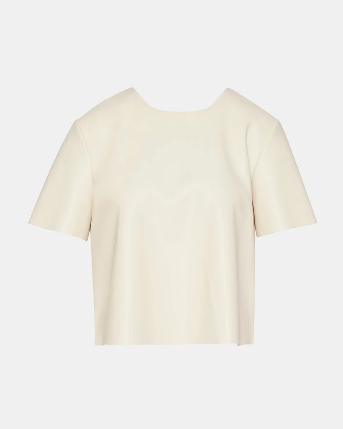 Wir präsentieren unser luxuriöses Ezra Top. Verleihen Sie Ihrem Stil mit diesem kurzärmeligen T-Shirt aus Kunstleder das gewisse Etwas. Der Metallreißverschluss verleiht diesem schicken Kleidungsstück einen Hauch von Raffinesse. Setzen Sie ein Statement mit diesem exklusiven und eleganten Top.