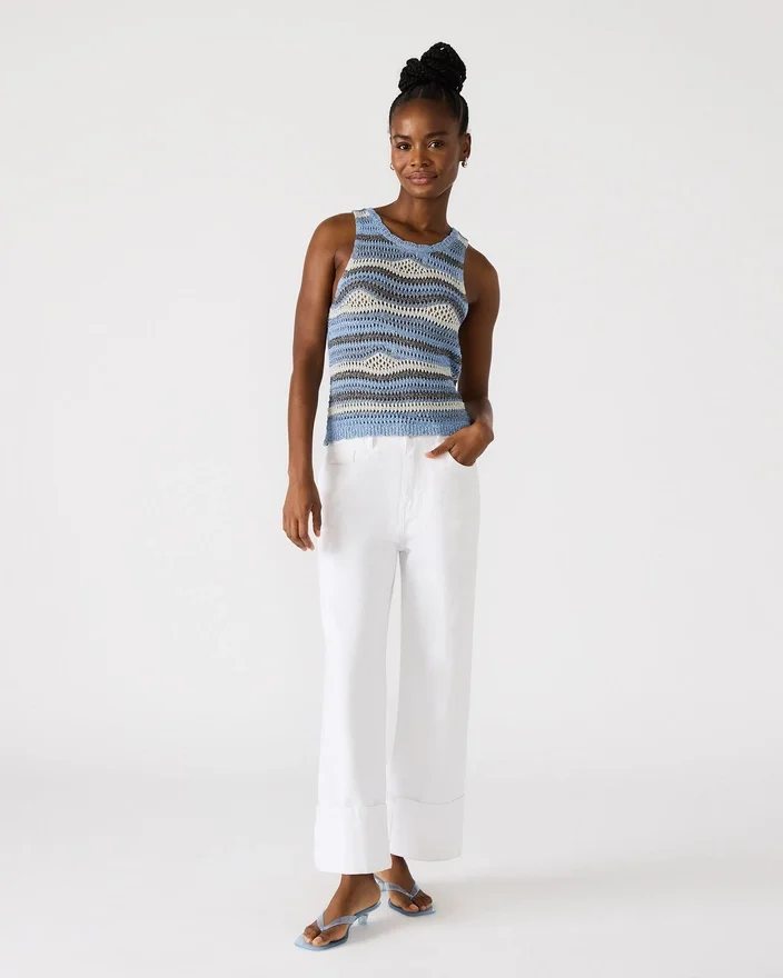 Das Hannah Top ist aus einem gehäkelten Strickstoff gefertigt und verleiht dem klassischen Sweater-Tanktop eine einzigartige und stilvolle Note. Leicht und dennoch bequem, ist dieses Top perfekt, um jedem Outfit Struktur und das gewisse Etwas zu verleihen. Bleiben Sie mit diesem vielseitigen Teil im Trend.