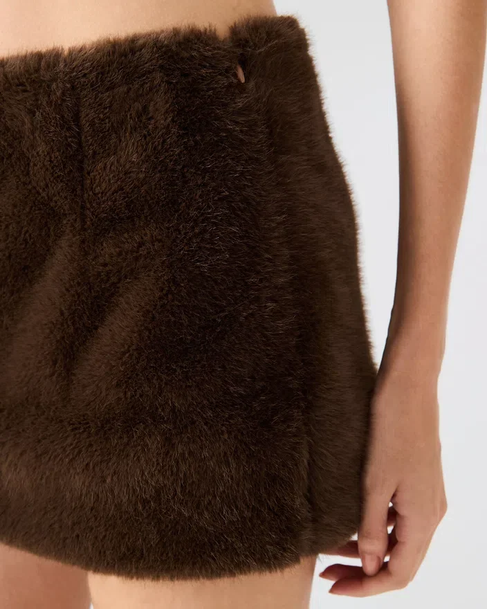 Werten Sie Ihre Wintergarderobe mit dem Aviva Kunstfellrock in Dunkel-Espresso auf. Dieser luxuriöse Minirock besticht durch seine weiche Kunstfellverarbeitung, die eine raffinierte Textur ohne Kompromisse bietet. Der praktische seitliche Reißverschluss sorgt für eine mühelose Passform, während der satte Espresso-Farbton sich nahtlos mit Basics oder Statement-Stücken kombinieren lässt.