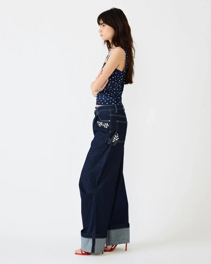 Bringen Sie Ihren Denim-Look auf ein neues Level mit der Bobbie Jean Bijou Blue. Diese weit geschnittenen Unterteile besticken mit atemberaubenden Strassverzierungen, die bei jedem Schritt das Licht einfangen und Ihrem Alltagslook einen Hauch von Glamour verleihen.