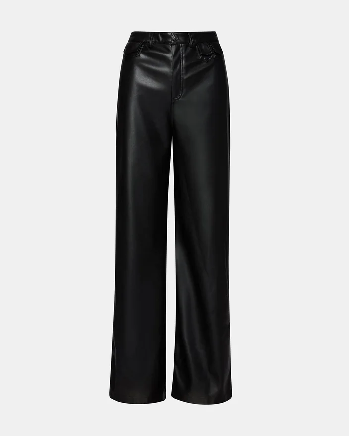 Diese Geraldine-Hose besticht durch ein elegantes Kunstleder-Finish mit geradem Beinschnitt für eine moderne, taillierte Silhouette. Mit Knopf- und Reißverschluss versehen, bietet sie sowohl Stil als auch einen sicheren Sitz. Perfekt, um Ihre Garderobe mit einem eleganten, ausgefallenen Look aufzuwerten.