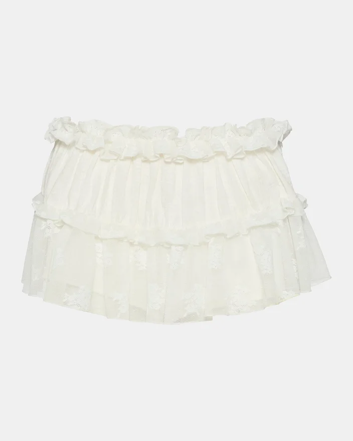 Der Leta Rock Snow White kombiniert zarte Rüschen-Spitzenverzierungen mit einem zeitgemäßen Silhouetten-Design und schafft so ein vielseitiges Kleidungsstück für stilvolle Alltagsoutfits. Dieser Minirock verfügt über einen raffinierten seitlichen Reißverschluss, der für einen sicheren, eleganten Sitz sorgt. Die aufwendige Spitzenkonstruktion sorgt für Struktur und optische Spannung, während die Farbgebung zeitlosen Charme versprüht und sich mühelos mit Ihrer bestehenden Garderobe kombinieren lässt. Dieser Rock eignet sich perfekt zum Kombinieren oder solo und lässt sich nahtlos vom Tag in den Abend übertragen.