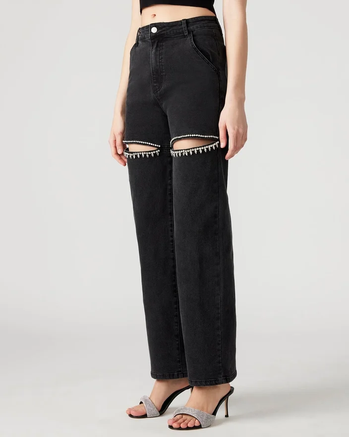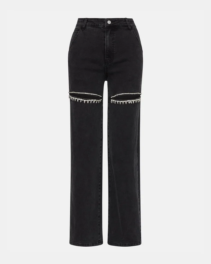 Die Taylor-Jeans bietet eine stilvolle Variante eines klassischen Designs. Mit ihrer weiten Passform sorgt diese Jeans für Komfort und Vielseitigkeit, während die aufwendigen Strassverzierungen an den Oberschenkeln einen Hauch von Glamour verleihen.