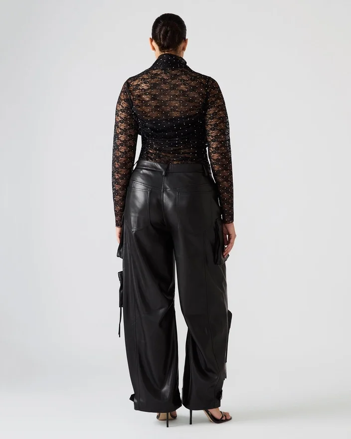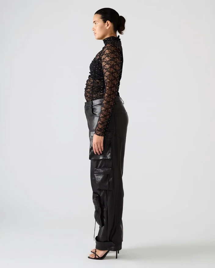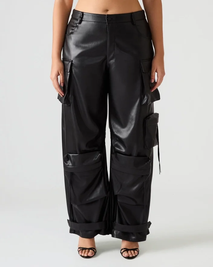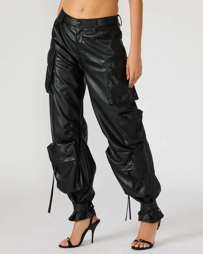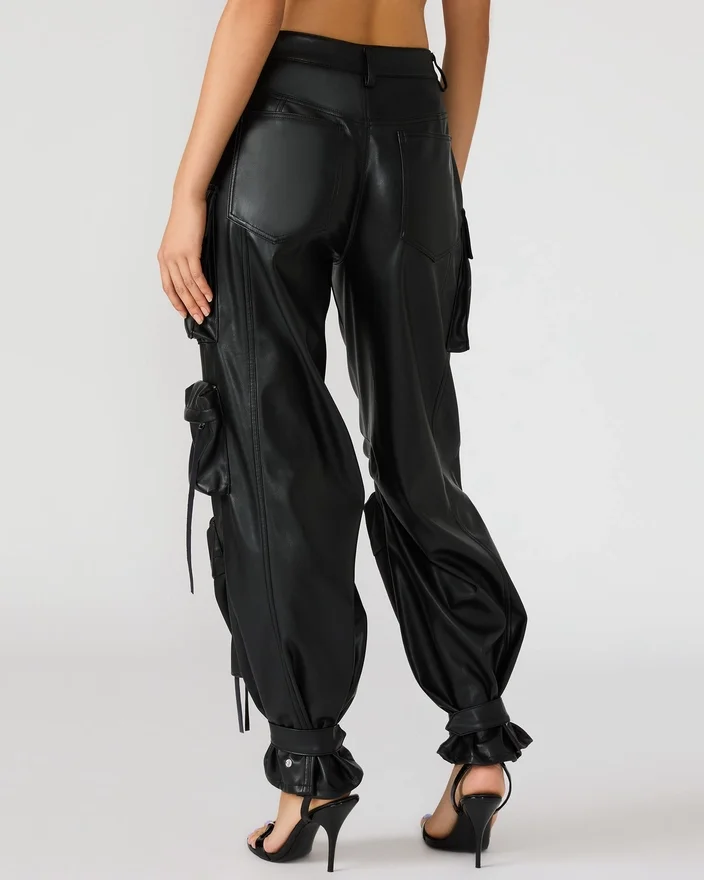 Die Vegan Leather Duo Pant Black wurde fachmännisch für eine strukturierte und voluminöse Passform entworfen und aus hochwertigen Materialien gefertigt. Mit verstellbaren Knöchelriemen bietet diese Cargo-Hose mit weitem Bein eine vielseitige Silhouette, die sich ganz nach Ihren Vorlieben anpassen lässt.