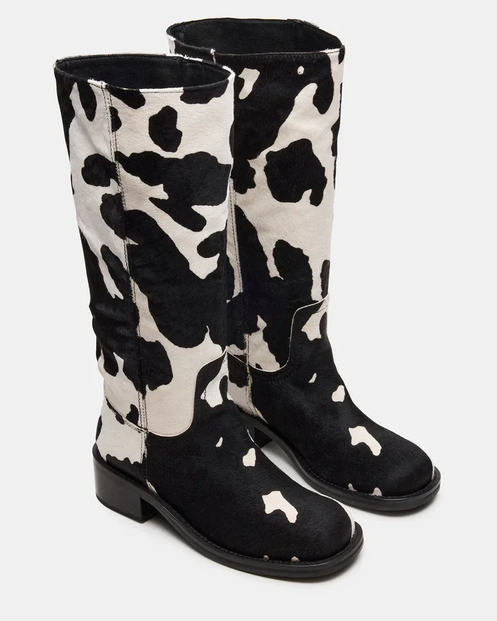 Riggs Black Cow Print Wide Calf