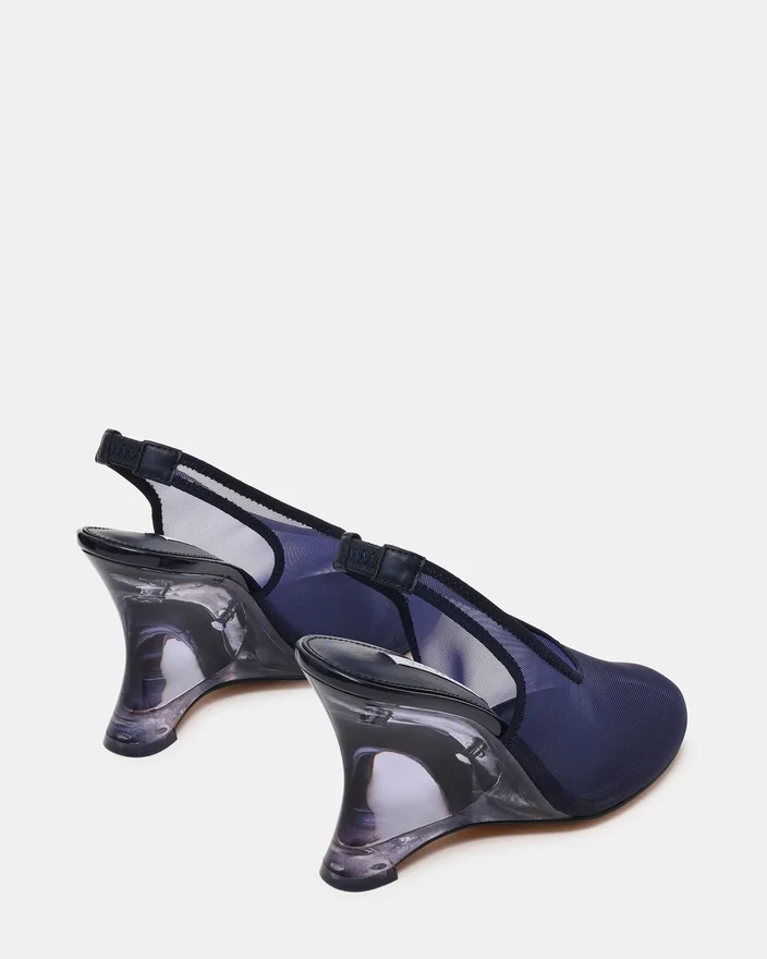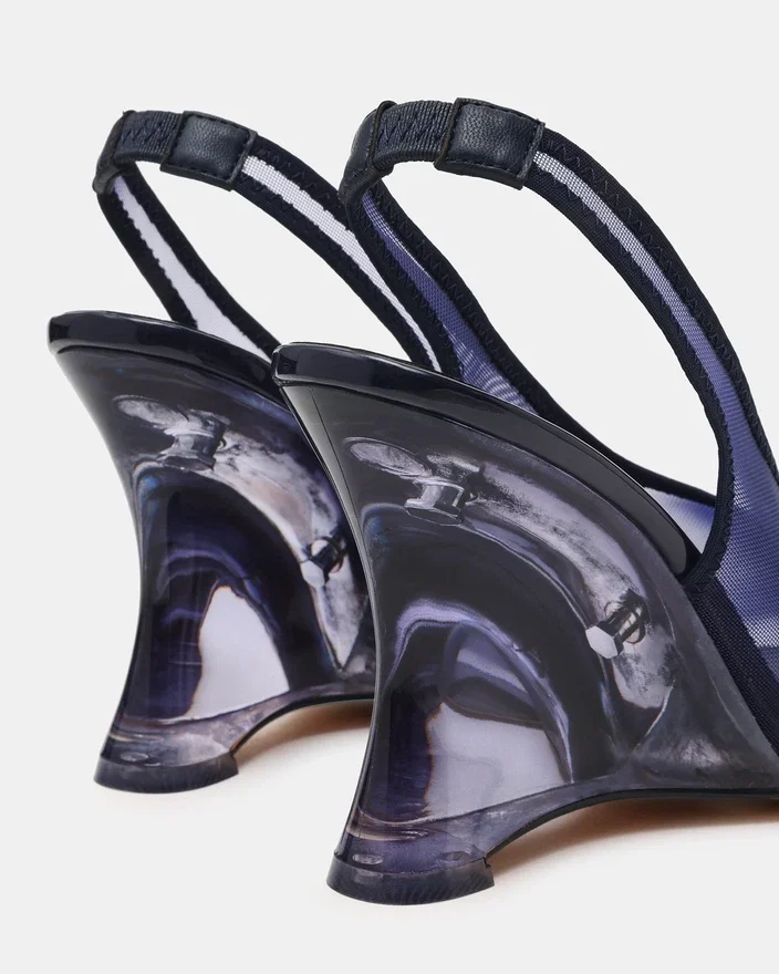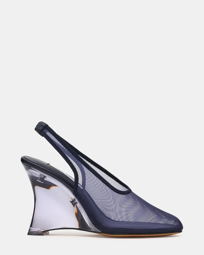 Der Dyra Navy Multi ist ein raffinierter Slingpumps-Keilschuh, der modernes Design mit praktischer Eleganz verbindet. Das Mesh-Material sorgt für eine luftige, zeitgemäße Silhouette, während der Keilabsatz den ganzen Tag über bequemen Halt und Stabilität bietet. Der Slingback-Riemen sorgt für einen sicheren Sitz, wodurch sich dieses vielseitige Modell perfekt für berufliche und Freizeit-Anlässe eignet.