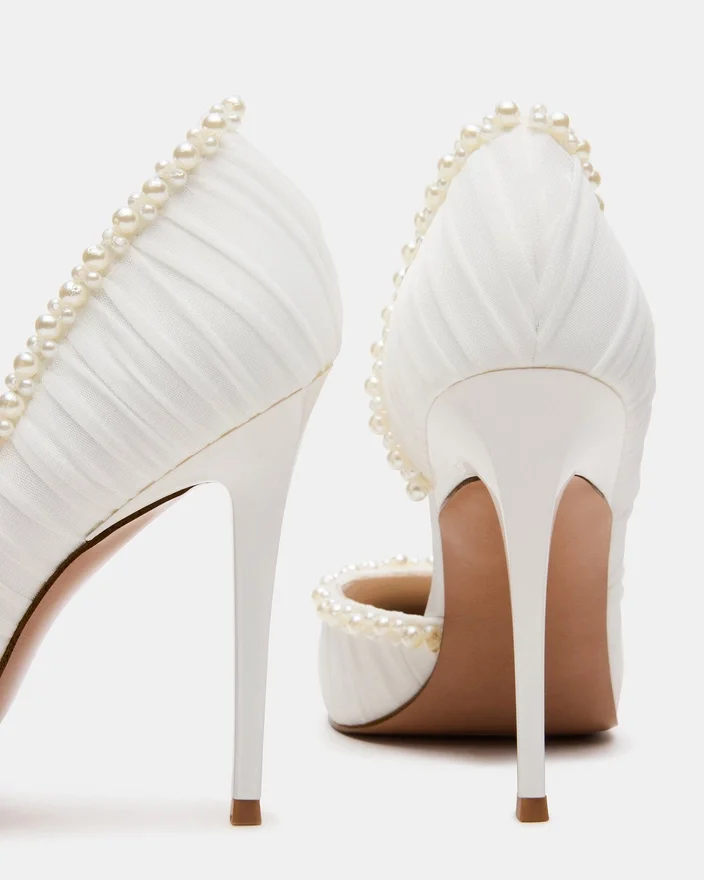 Verleihen Sie Ihrem Stil das gewisse Etwas mit diesen eleganten Pumps aus perlweißem Mesh, die sich durch eine spitze Zehenpartie und einen schlanken Stiletto-High Heel auszeichnen, der für raffinierte Höhe sorgt. Die gerafften Details betonen die Silhouette und sorgen für einen eleganten Look, der sich perfekt für formelle Anlässe oder berufliche Umgebungen eignet. Dieser Schuh wurde für Anziehungskraft und Selbstbewusstsein entworfen und bereichert Ihre Garderobe mit meisterhafter Handwerkskunst und zeitlosem Design.