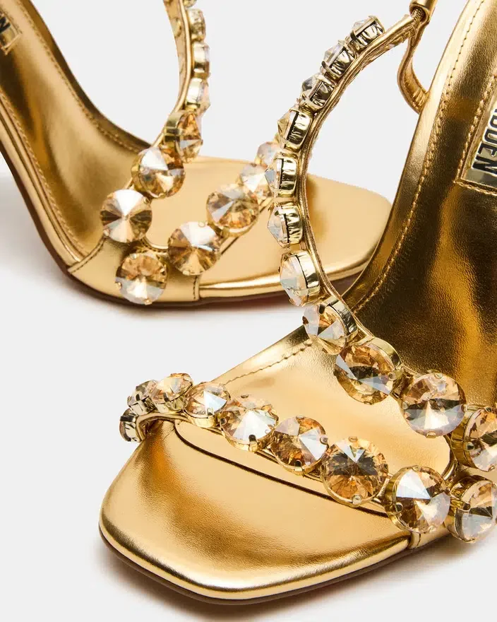 Verleihen Sie Ihrem Stil das gewisse Etwas mit dem Modell „Nylie Gold Multi“, das sich durch ein elegantes Design mit eckiger Zehenpartie und Riemchen sowie einen schlanken Stiletto-High Heel mit exquisiten Verzierungen auszeichnet. Diese raffinierte Silhouette vereint Eleganz und Glanz und ist perfekt, um bei jedem Anlass ein Statement zu setzen. Die zarten Riemchen sorgen für einen sicheren Halt und betonen gleichzeitig Ihren Fuß, sodass Sie bei jedem Schritt Anziehungskraft und Selbstbewusstsein ausstrahlen.