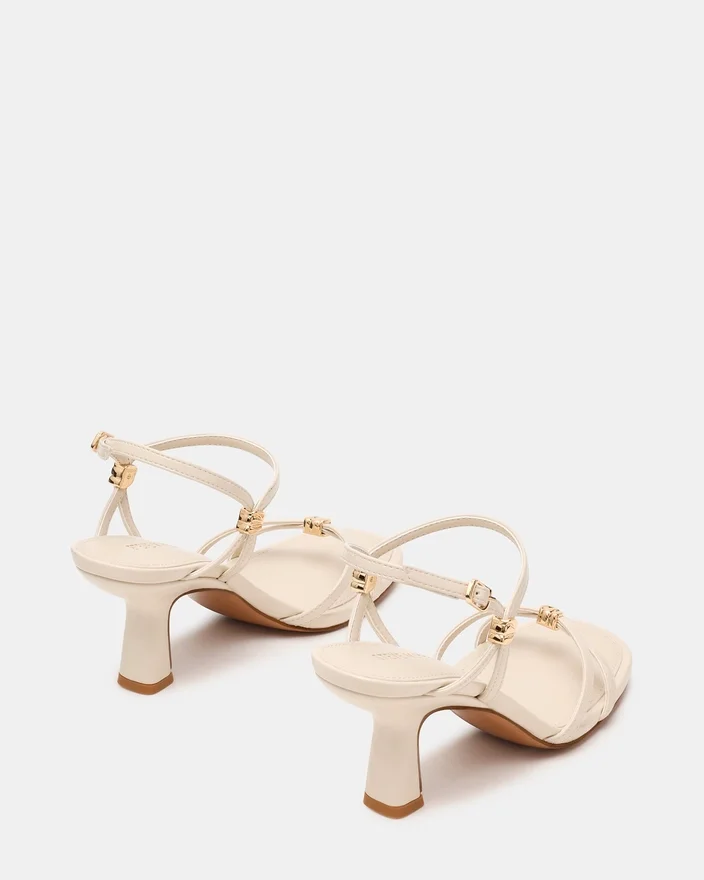 Der Posy Bone wertet mit seiner raffinierten Silhouette jede Garderobe auf. Zarte goldene Details verleihen dem schlanken High Heel einen Hauch von Luxus, während das Riemchen-Design für sicheren Halt und optische Akzente sorgt. Die eckige Zehenform bietet ein modernes, schmeichelhaftes Profil, das sich nahtlos vom Tag bis zum Abend tragen lässt.