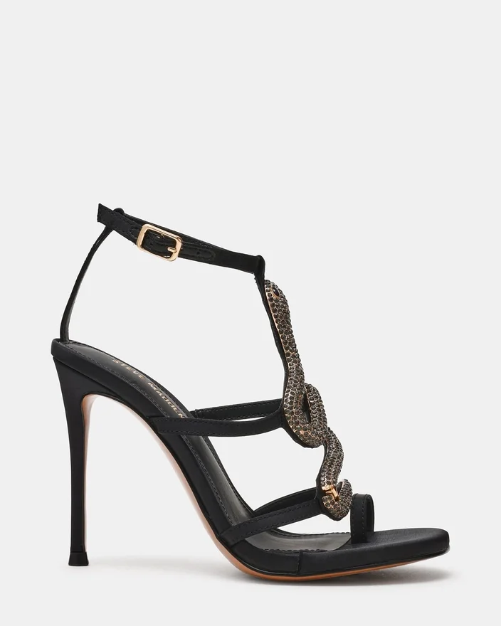 Setzen Sie ein Statement mit dem Python Black Stiletto, einem raffinierten Absatz, der alle Blicke auf sich zieht. Dieses Riemchen-Design besticht durch auffällige Strass-Details in Schlangenoptik, die der klassischen Silhouette einen modernen Touch verleihen. Das elegante Finish lässt sich mühelos mit jeder Garderobe kombinieren, während der Stiletto-High Heel zeitlose Eleganz und Selbstbewusstsein ausstrahlt. Perfekt für alle, die auffällige, unverwechselbare Schuhe schätzen.