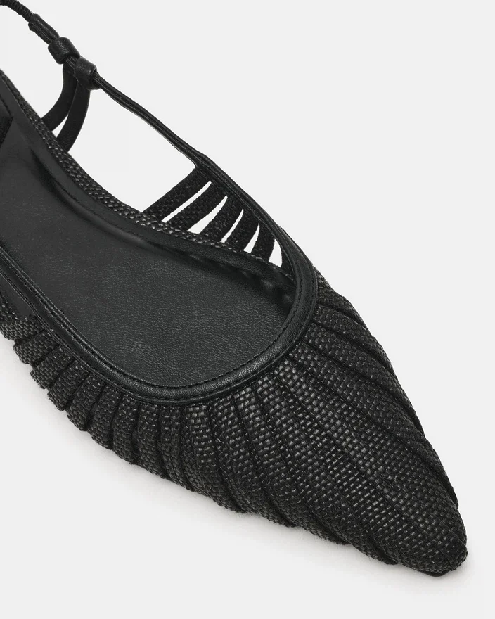Der Alandria Black Raffia ist ein eleganter flacher Schuh mit spitzer Zehenpartie, der zeitlose Eleganz mit modernem Komfort verbindet. Seine gewebte Konstruktion sorgt für eine atmungsaktive Struktur, während die Slingpumps sicheren Halt bieten. Perfekt für den Übergang vom Büro zum Abend, lässt sich dieser vielseitige Stil mühelos mit Kleidern, Hosen oder Freizeitkleidung kombinieren. Ein raffiniertes Must-Have für die anspruchsvolle Garderobe.