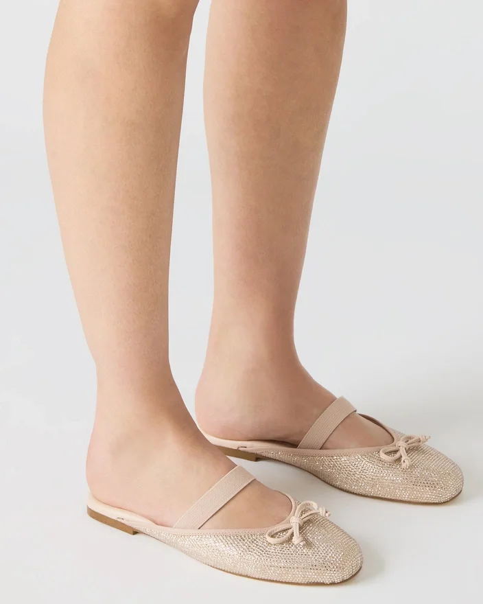 Erleben Sie mühelosen Stil mit dem Cutesy Rhinestone Ballerina-Schuh, der sich durch ein raffiniertes Slip-On-Design für einfachen Tragekomfort auszeichnet. Sein elegantes Schleifendetail verleiht ihm einen Hauch von Raffinesse, während die Mule-Silhouette eine moderne Interpretation eines klassischen Designs bietet. Dieser flache Schuh wurde für Komfort und Vielseitigkeit entworfen und passt nahtlos sowohl zu Freizeit- als auch zu eleganteren Looks.