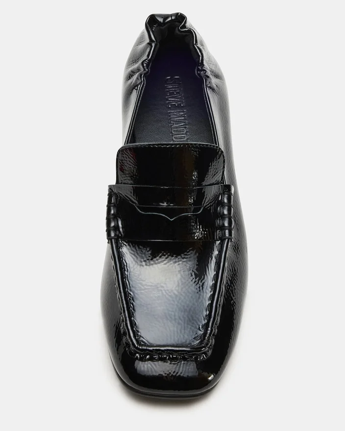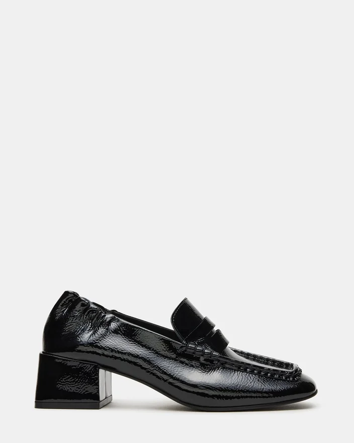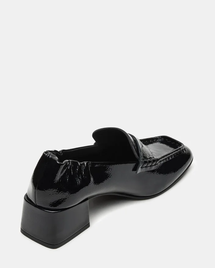 Der Estee Loafer aus schwarzem, gekräuseltem Lackleder besticht durch ein raffiniertes Design mit Absatz und eckiger Zehenpartie, das zeitgenössischen Stil mit meisterhafter Handwerkskunst verbindet. Die gekräuselte Lackoberfläche sorgt für eine dezente Struktur, während der strukturierte Absatz sowohl Eleganz als auch Halt bietet. Dieser Loafer ist ideal für Berufstätige, die einen eleganten und dennoch bequemen Schuh suchen, der jedes Outfit mit einem modernen Touch aufwertet.