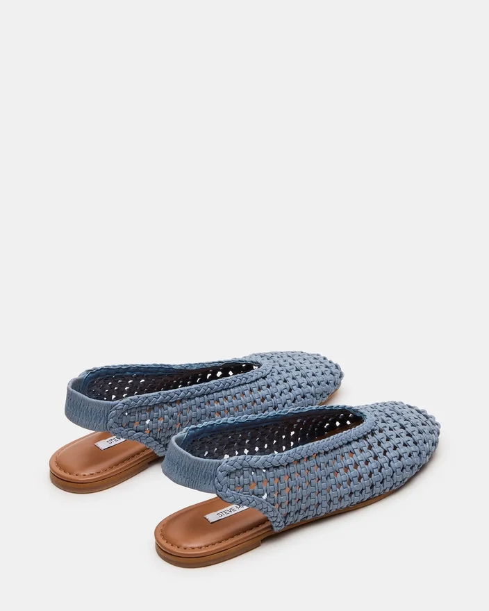 Der Rumi Blue Leather Flat besticht durch seine unverwechselbare Handwerkskunst mit aufwendig gewebtem Obermaterial und einem eleganten, runden Zehenprofil. Der Slingpump-Riemen sorgt für einen sicheren Sitz und bewahrt gleichzeitig die minimalistische Ästhetik des Schuhs. Dieses vielseitige Design ist die perfekte Wahl für alle, die bei ihrem Alltagsschuhwerk sowohl Eleganz als auch Funktionalität schätzen.