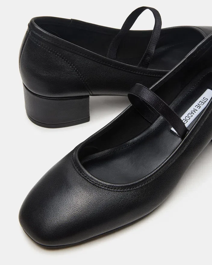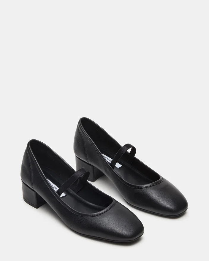 Der Mural Black Leather verbindet zeitloses Mary-Jane-Design mit modernem Stil. Diese Silhouette mit eckiger Zehenpartie verfügt über einen stabilen Blockabsatz, der den ganzen Tag über Komfort und Stabilität bietet, während der klassische Mary-Jane-Riemen für einen raffinierten Touch sorgt. Aus hochwertigen Materialien gefertigt, eignet sich dieser Absatz nahtlos sowohl für den Beruf als auch für Ausflüge am Wochenende.