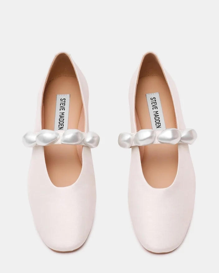 Der Poppin Pearl White Mary Jane Ballerina-Schuh verbindet klassischen Stil mit moderner Handwerkskunst. Hergestellt aus hochwertigen Materialien, bietet dieser flache Schuh einen eleganten Look, der sich sowohl für berufliche als auch für Freizeit-Anlässe eignet. Sein Mary-Jane-Riemen sorgt für einen sicheren Sitz und bewahrt gleichzeitig die Eleganz. Leicht und bequem, bieten diese flachen Schuhe den ganzen Tag Tragekomfort, ohne dabei an Raffinesse einzubüßen. Perfekt für alle, die zeitloses Design gepaart mit zuverlässigem Komfort suchen.