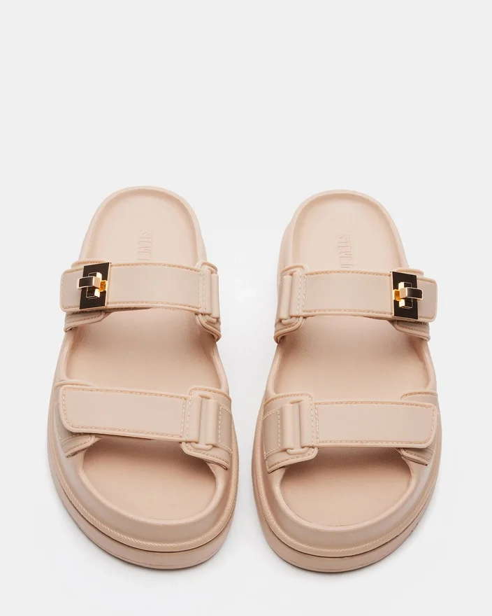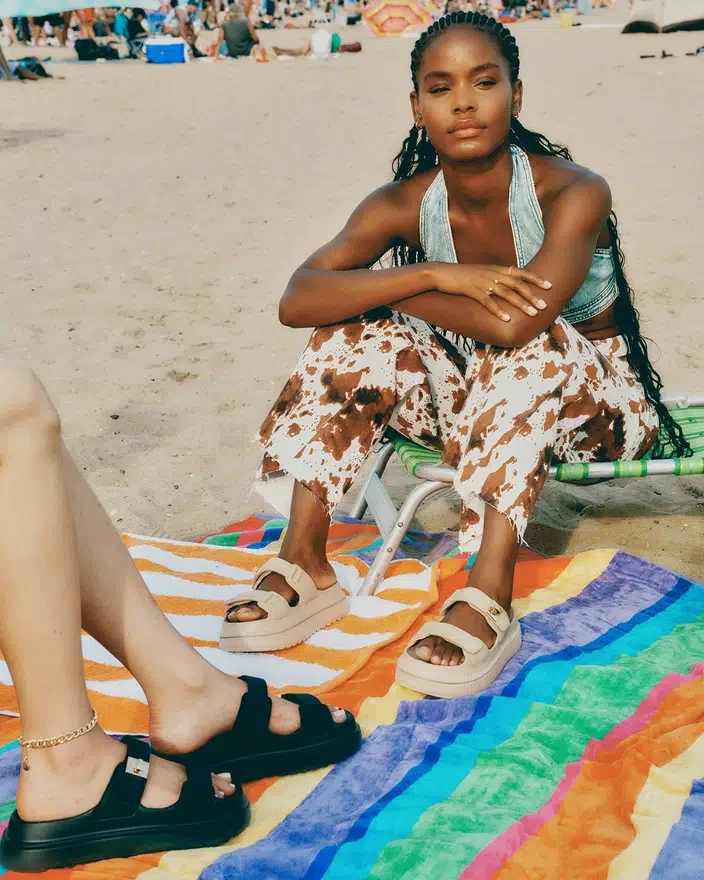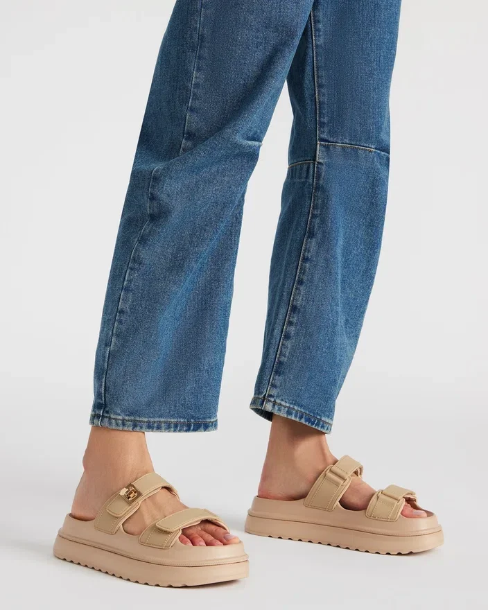 Verleihen Sie Ihrem Stil das gewisse Etwas mit der Bigschmona Jelly Plateausandale. Das Flatform-Design sorgt für einen modernen Twist, während der Turn-Lock-Akzent einen Hauch von Raffinesse verleiht. Bringen Sie Ihre Mode auf ein neues Level und genießen Sie gleichzeitig den Komfort und die Stabilität dieses vielseitigen Schuhs.