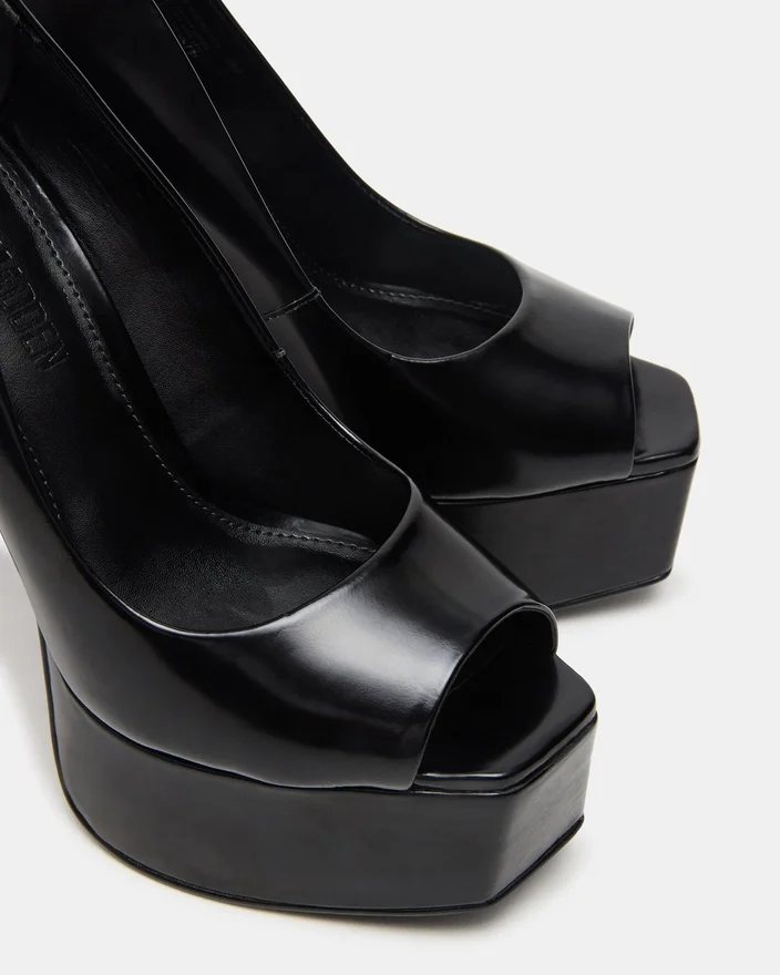 Verleihen Sie Ihrem Stil das gewisse Etwas mit dem Ives Black Box, der sich durch einen eleganten Plateau-Stiletto-High Heel und eine moderne eckige Zehenpartie auszeichnet. Dieses Design wurde sowohl für Raffinesse als auch für Komfort entworfen und verleiht jedem Outfit einen selbstbewussten Gang und einen zeitgemäßen Touch. Perfekt für alle, die ein raffiniertes und dennoch auffälliges Statement in Sachen Schuhwerk suchen.