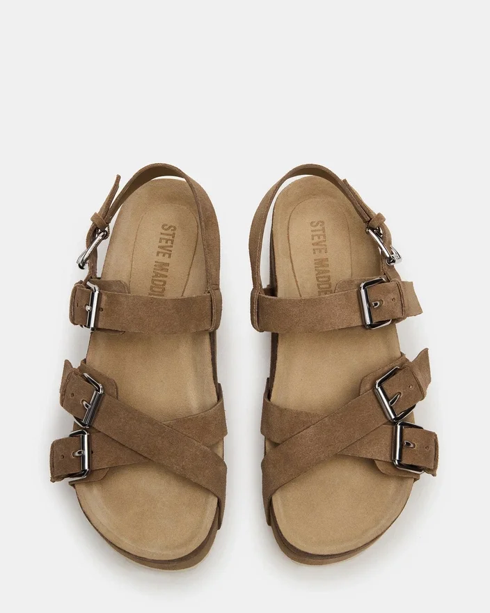 Verleihen Sie Ihrem Stil das gewisse Etwas mit der Kiwi Plateau-Riemchensandale. Ihr Flatform-Design und das bequeme Fußbett sorgen für Tragekomfort den ganzen Tag, während die Schnallendetails einen Hauch von Eleganz verleihen. Schlüpfen Sie in diese Sandalen und erleben Sie die perfekte Mischung aus Mode und Komfort.