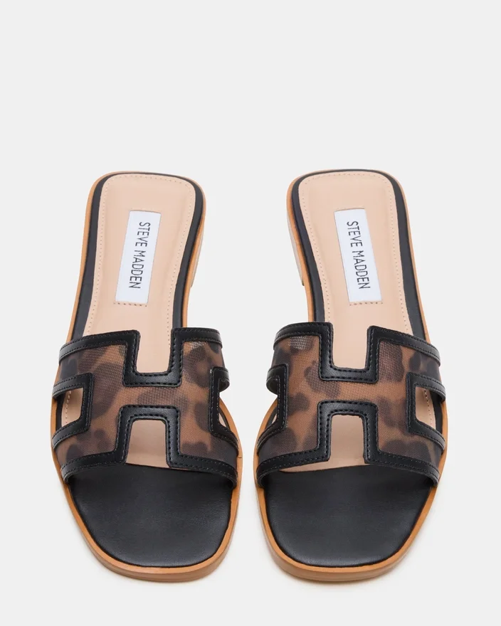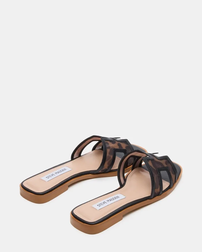 Geometrische Ausschnitte am breiten, einzelnen Riemen der Hadyn-Slide verleihen diesem flachen Sandalen-Design einen frischen Look.