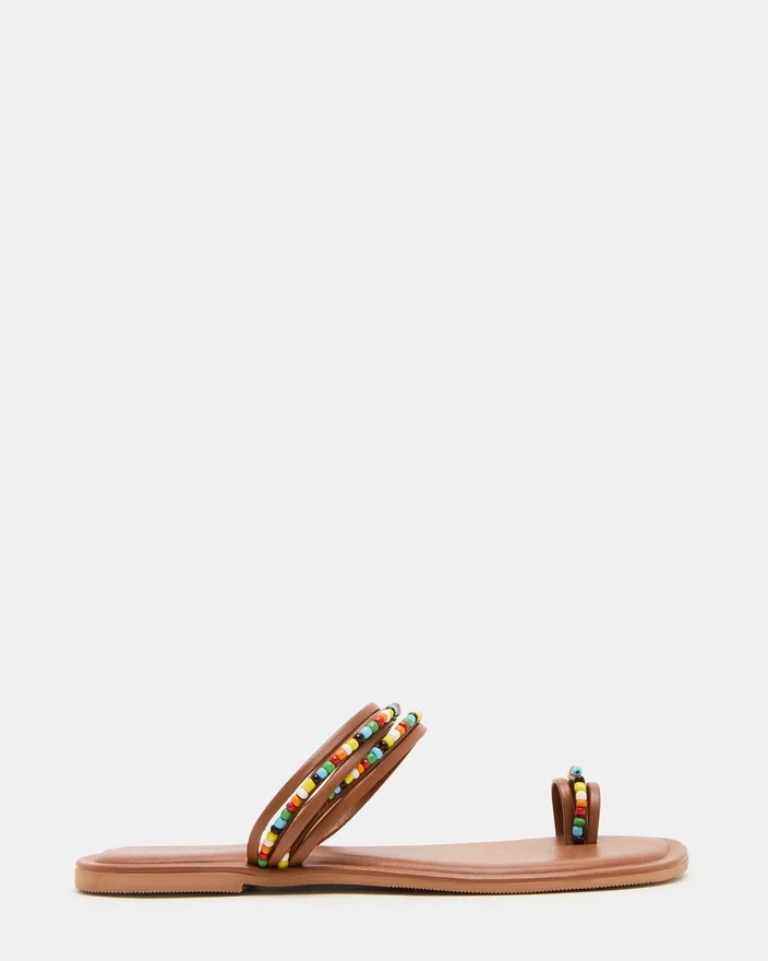 Die Sandale Nabila Tan Multi besticht durch ein markantes Design mit eckiger Zehenpartie, ergänzt durch eine Vielzahl mehrfarbiger Perlen, und verleiht Ihrer Sommer-Schuhkollektion eine raffinierte und kunstvolle Note. Ihre sorgfältig gearbeiteten Details unterstreichen sowohl Stil als auch Komfort und machen sie zur idealen Wahl für alle, die fachmännische Handwerkskunst in Kombination mit lebhaftem Flair schätzen.