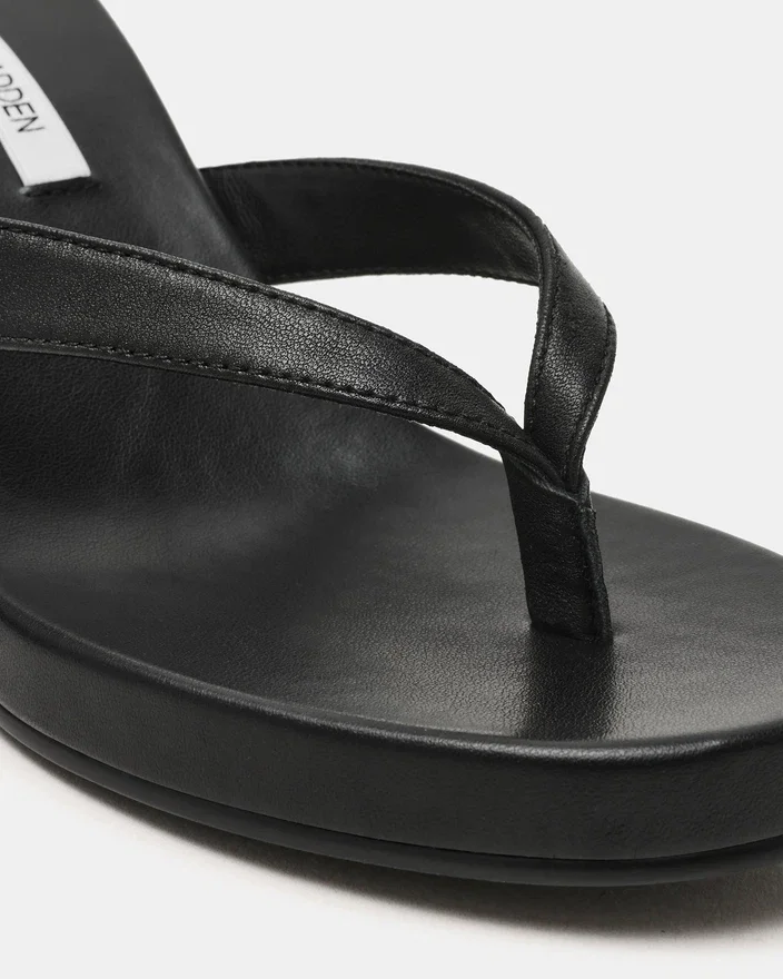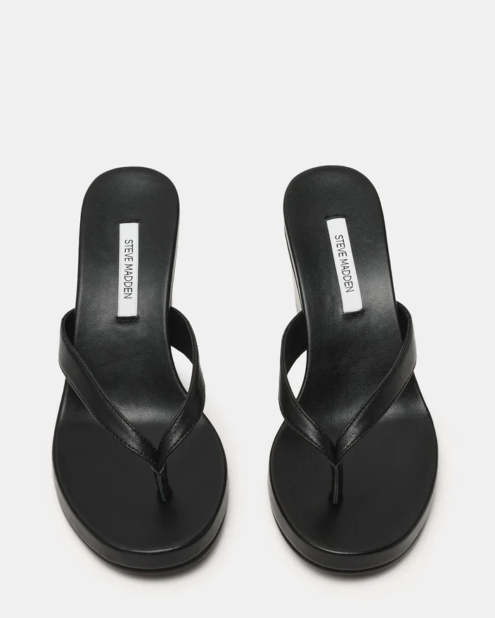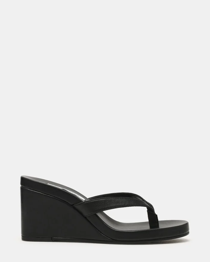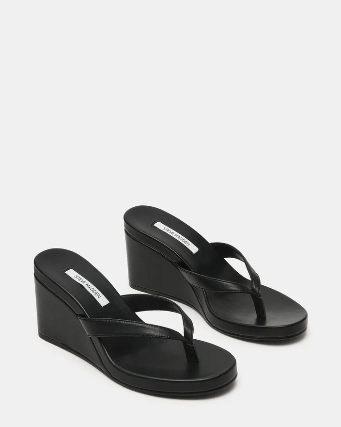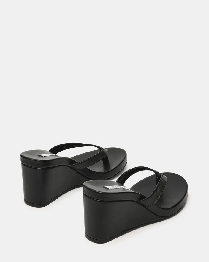 Werten Sie Ihre Sommergarderobe mit der Playing Black Leather Keilschuh-Sandale auf. Mit ihrem eleganten Zehensteg-Design und der bequemen, abgerundeten Zehenpartie bietet diese Sandale im Mule-Stil sowohl Stil als auch Komfort. Der Keilschuh sorgt für eine dezente Erhöhung und Stabilität, wodurch sie sich perfekt für den ganzen Tag eignet.