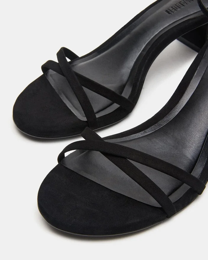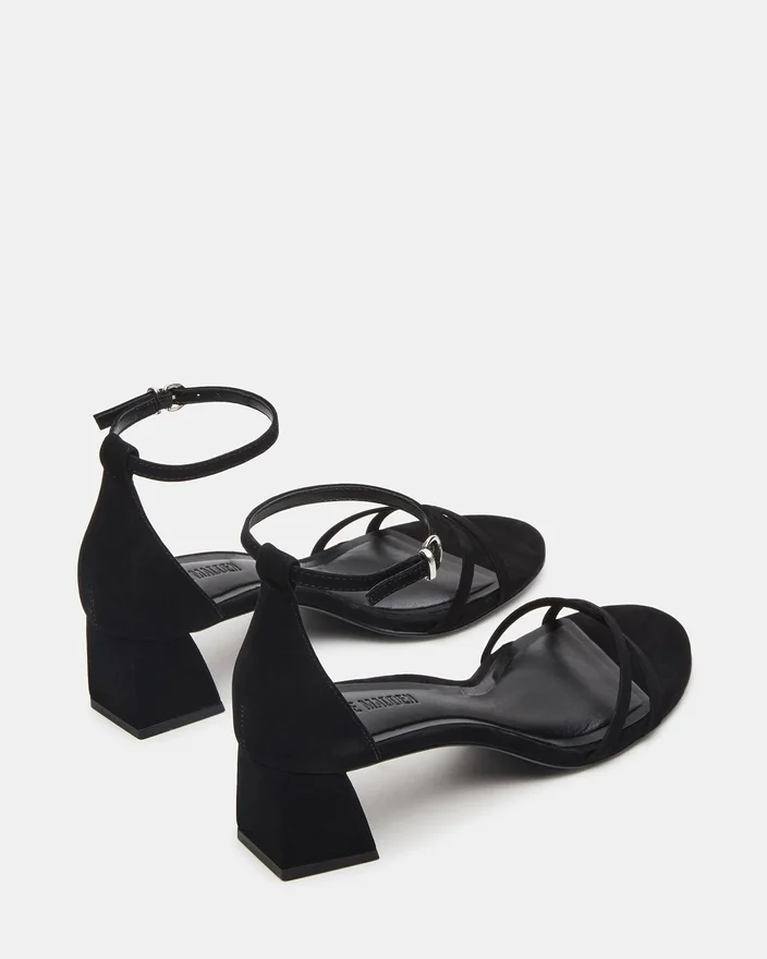 Die Rae Black Nubuck Riemchensandale mit Blockabsatz verbindet modernen Stil mit zuverlässigem Komfort. Sie ist aus hochwertigen Materialien gefertigt und verfügt über schmale Riemen, die sicheren Halt bieten und gleichzeitig die natürliche Form des Fußes betonen. Der stabile Blockabsatz sorgt für Stabilität und Tragekomfort und macht sie ideal für Tages- und Abendveranstaltungen, bei denen Sie gepflegt aussehen möchten, ohne auf Komfort zu verzichten. Diese Sandale bietet die perfekte Balance zwischen Eleganz und Funktionalität und ist die erste Wahl, um Ihre Schuhkollektion zu bereichern.